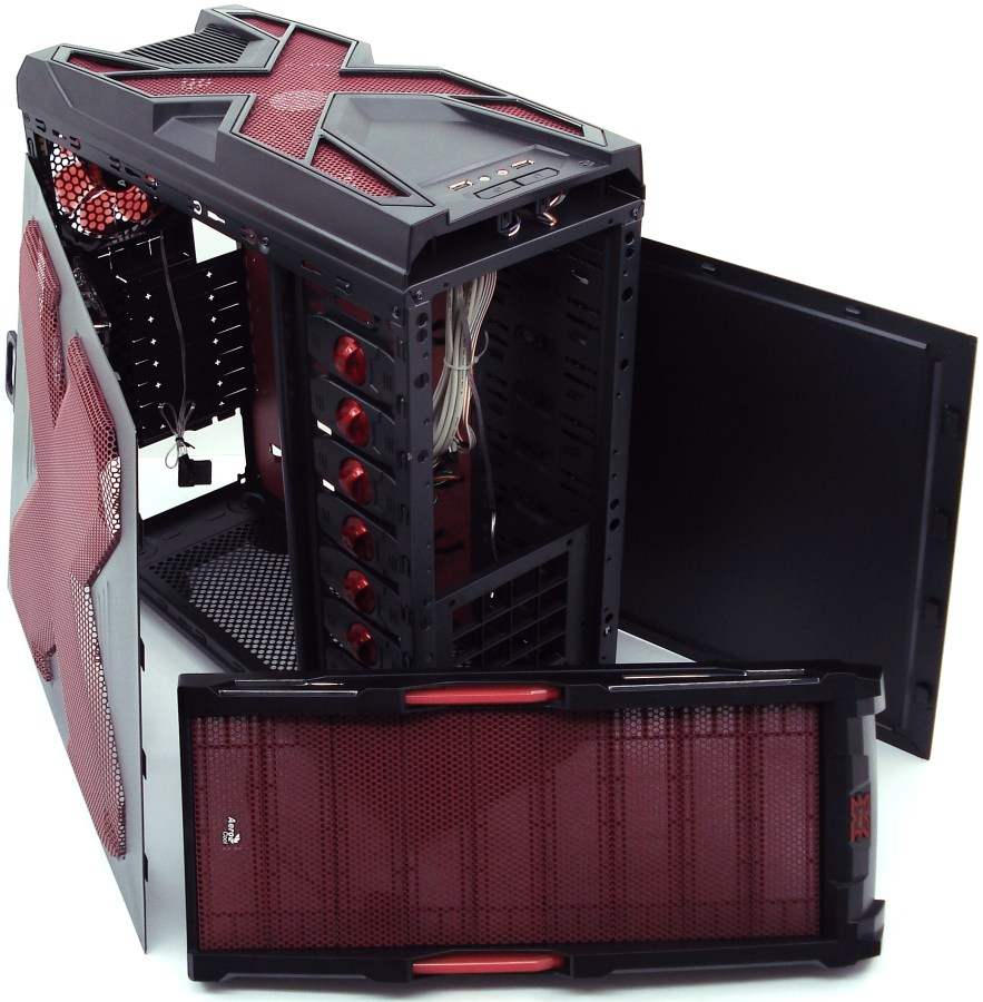 AEROCOOL STRIKE-X RED. Fotografía de Exposición V. Laterales + Frontal Desarmados