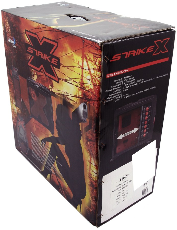 AEROCOOL STRIKE-X RED. Embalaje Vista Lateral Izquierda