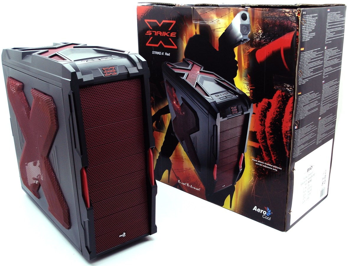 AEROCOOL STRIKE-X RED. Fotografía de Exposición I. Semitorre Strike-X Red + Embalaje