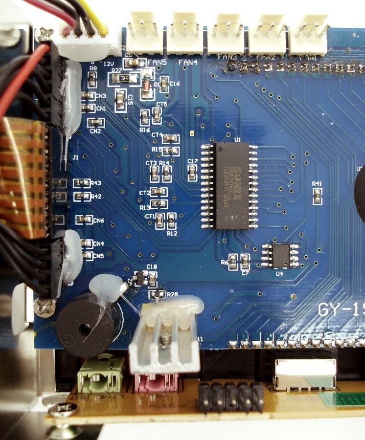 AEROCOOL STRIKE-X PANEL. Detalle Conector Audio 10 Pines . Speaker. Transistor 1