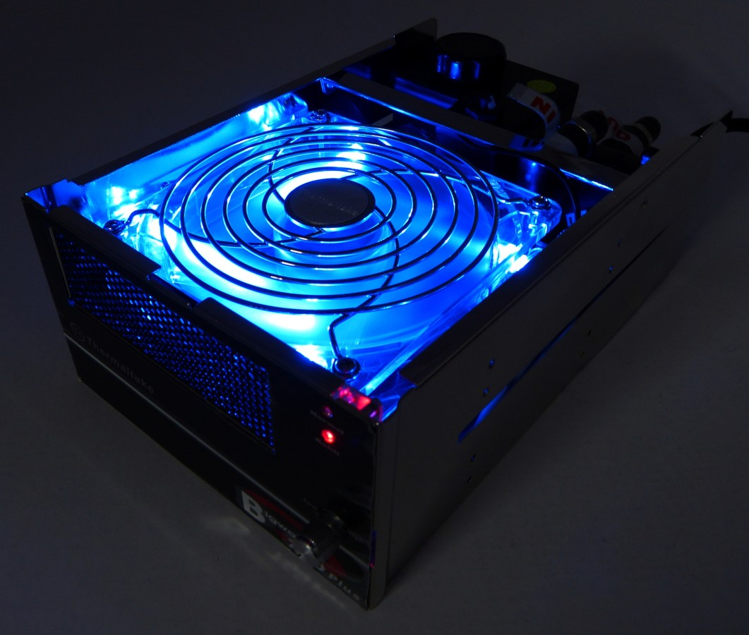 THERMALTAKE BIGWATER 760 PLUS. RL en Funcionamiento. Iluminación Azul del Ventilador de 12cm (Estado 1)
