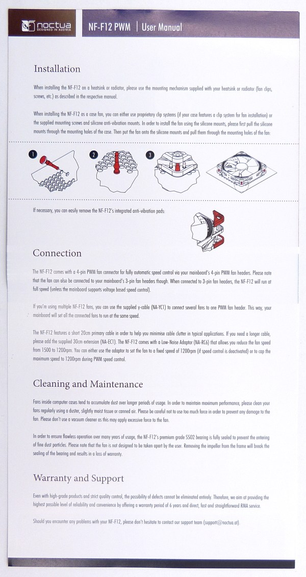 NOCTUA NF-F12 PWM. Reverso Manual de Usuario