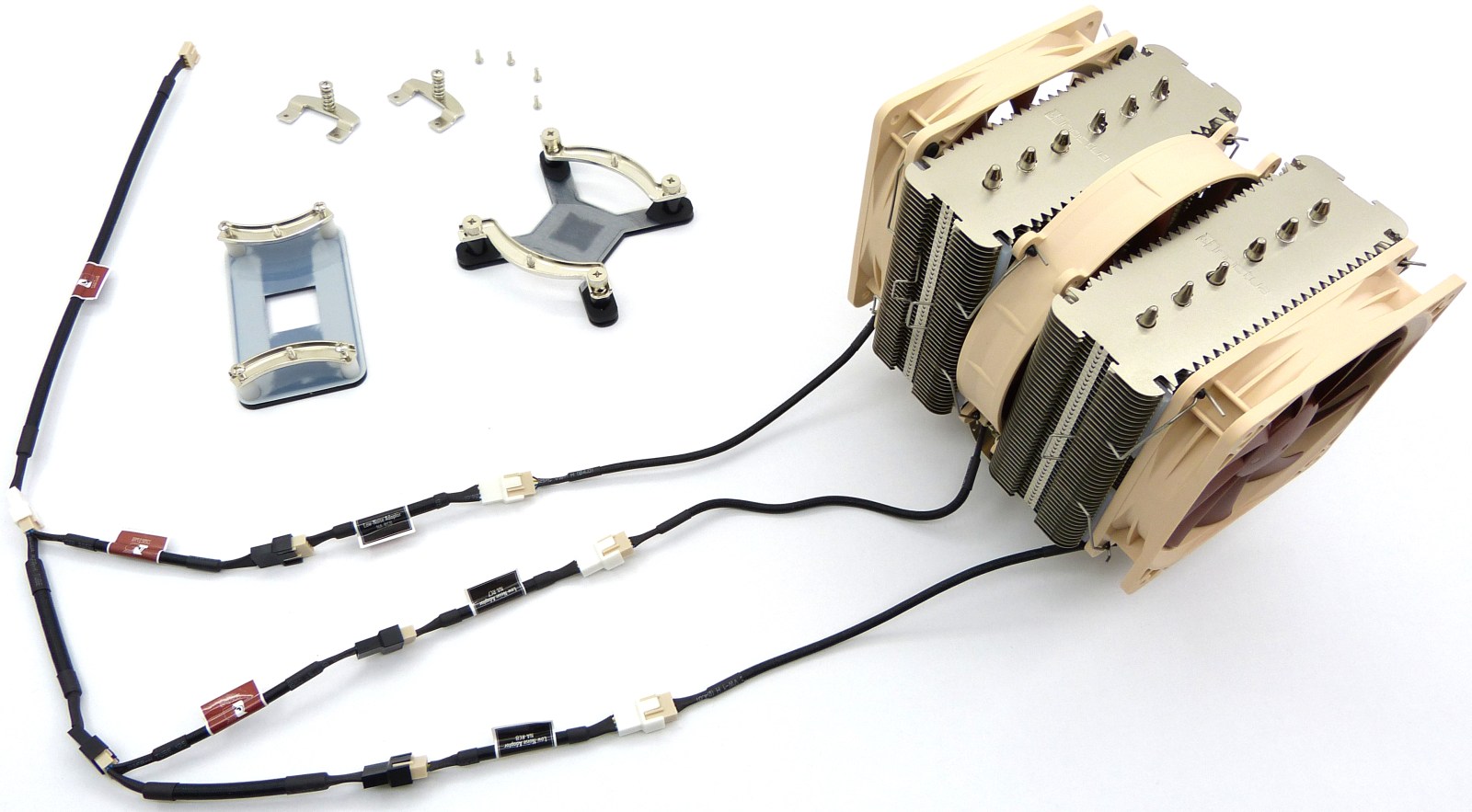 NOCTUA 10 PRODUCTOS PARA REFRIGERACIÓN. Fotografía Elaborada Disipador NH-D14 SE2011 con Ventilador NF-P12 PWM. Kits de montaje para Intel y AMD. Desglose de cableado Modular: cableados reductores de tensión, cableados adaptadores en «Y» y cableado alargador
