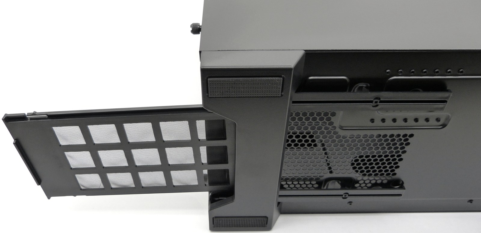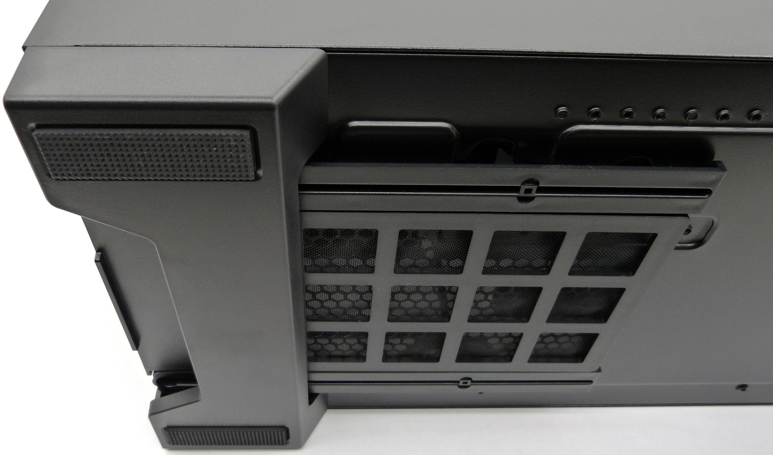 CORSAIR CARBIDE SERIES 300R. Detalle Extracción Trasera Filtro Antipolvo. Enrejado de plástico