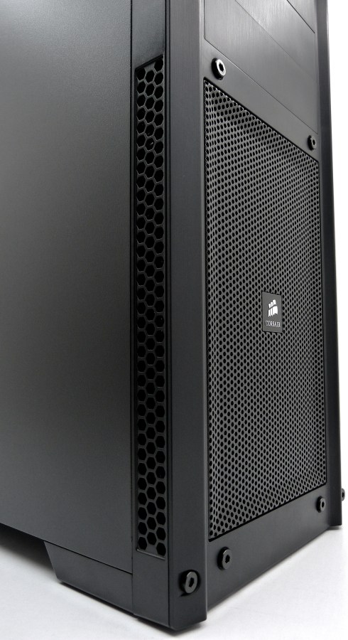 CORSAIR CARBIDE SERIES 300R. Detalle Frontal Inferior Zona Entrada Aire. Rejilla Frontal Tipo Mesh. Doble Tira Rejilla Lateral Perforado Hexagonal