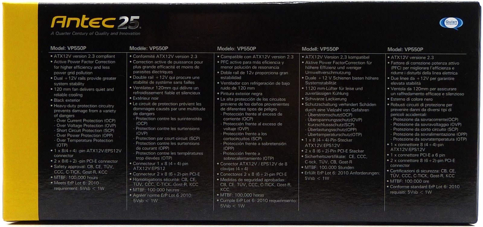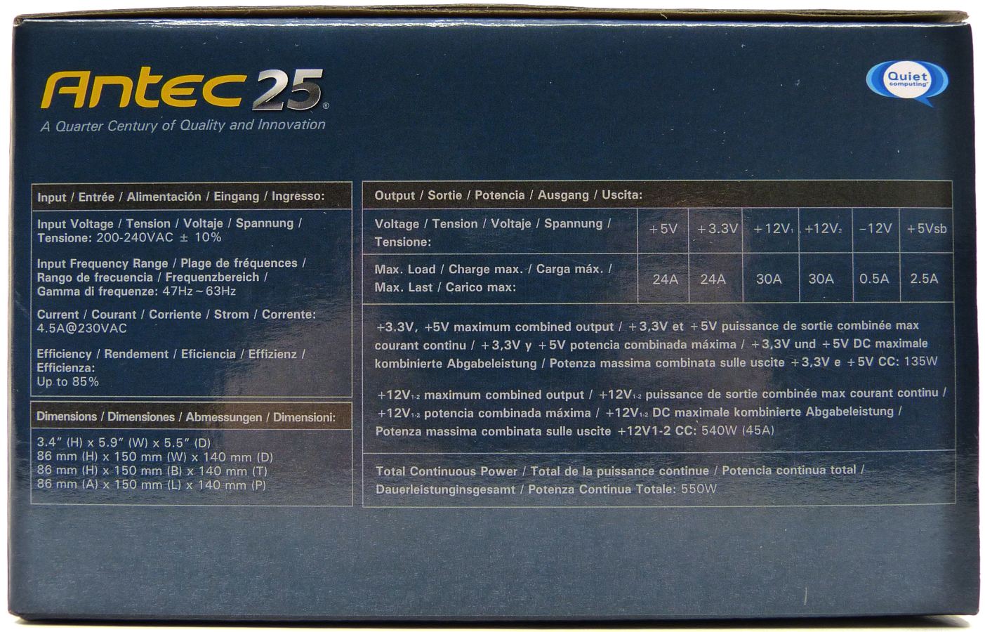 ANTEC VP550P. Embalaje Vista Lateral Izquierda