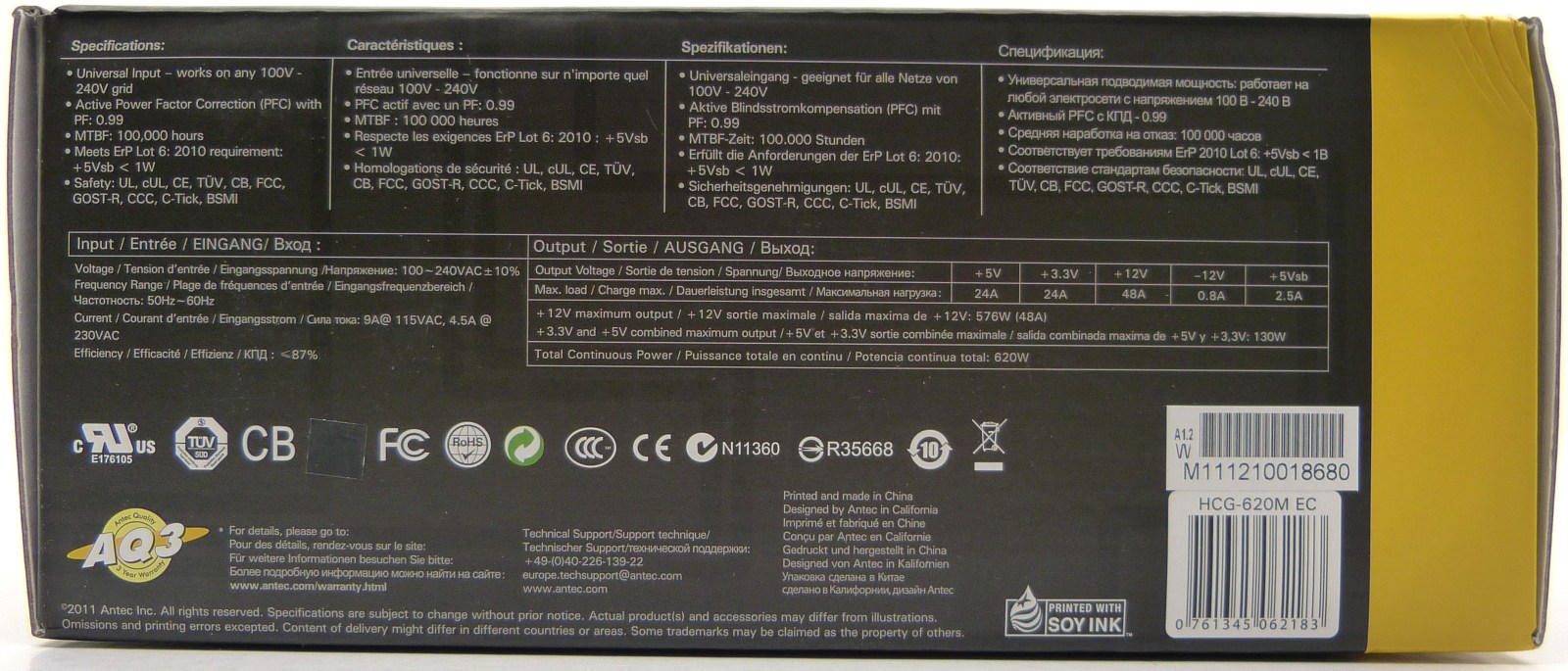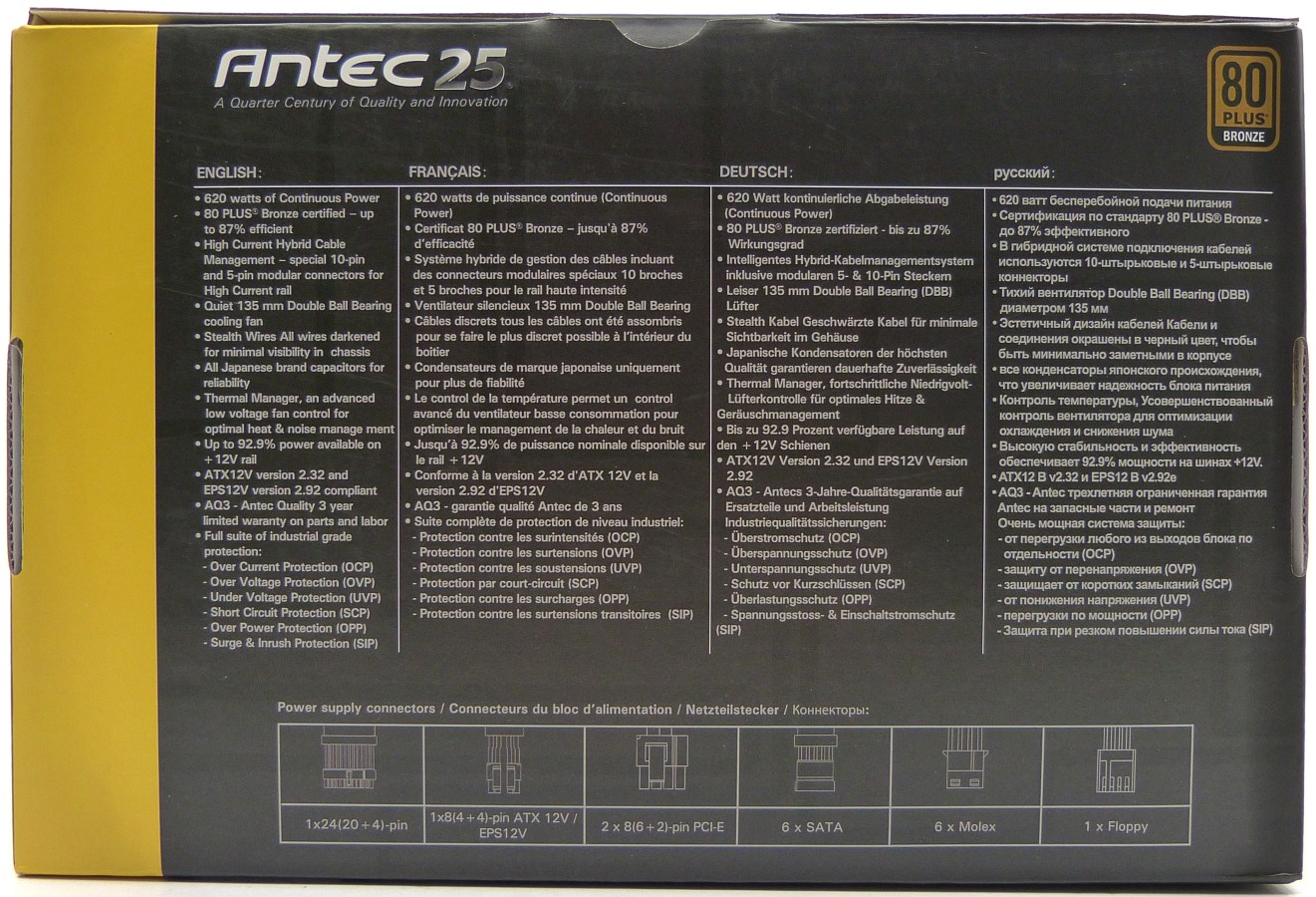 ANTEC HCG-620M. Embalaje Vista Trasera