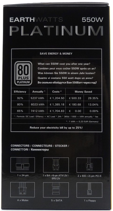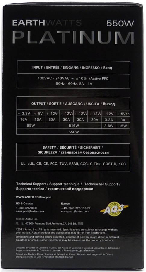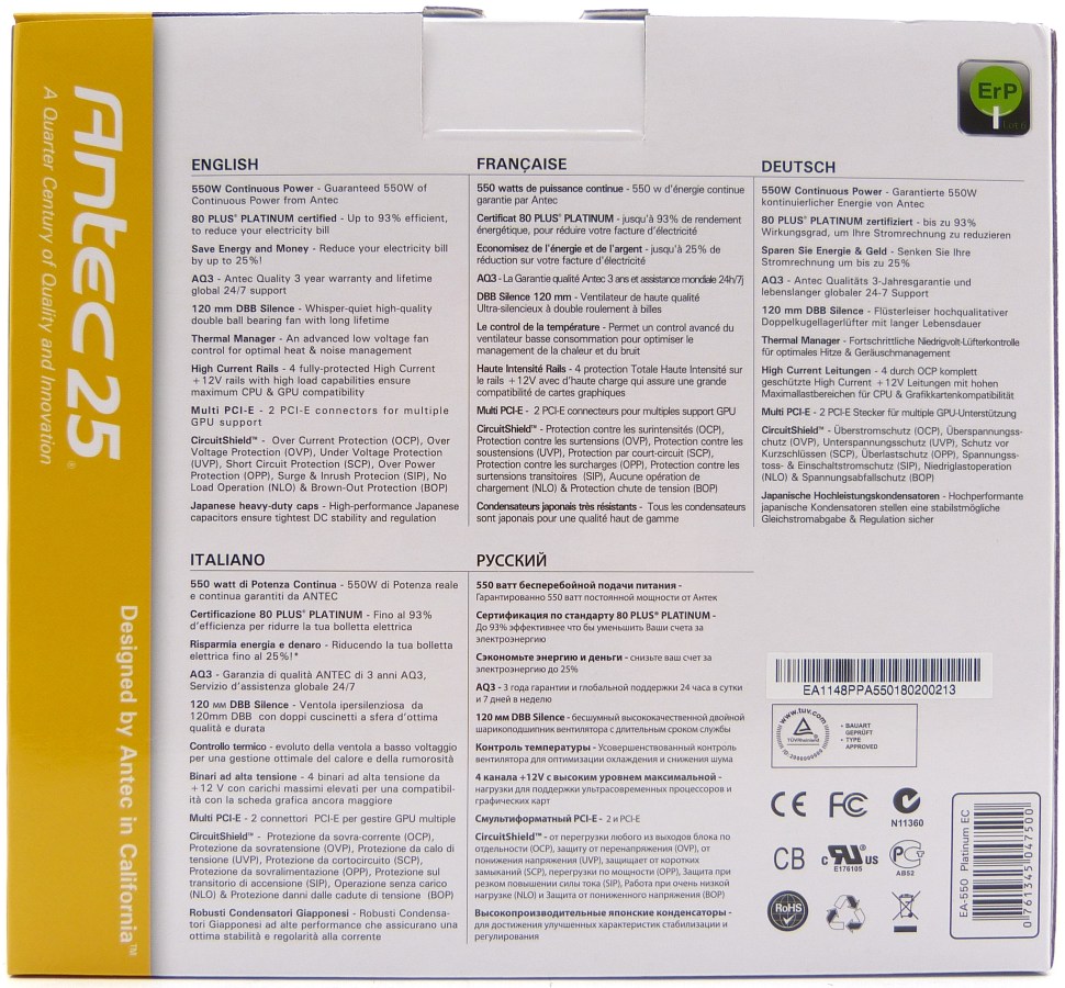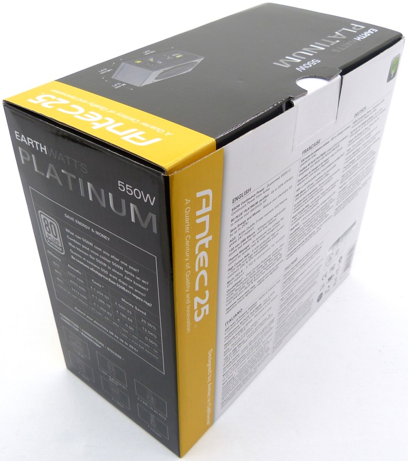 ANTEC EA-550 PLATINUM. Embalaje Vista Trasera