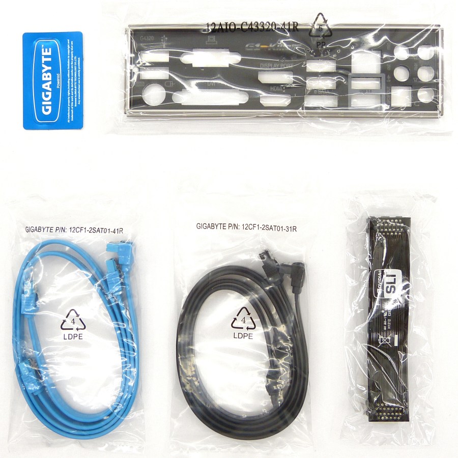 GIGABYTE G1.SNIPER M3. Cables SATA (x4), Puente Nvidia SLI, Placa Metálica Trasera y Pegatina Gigabyte