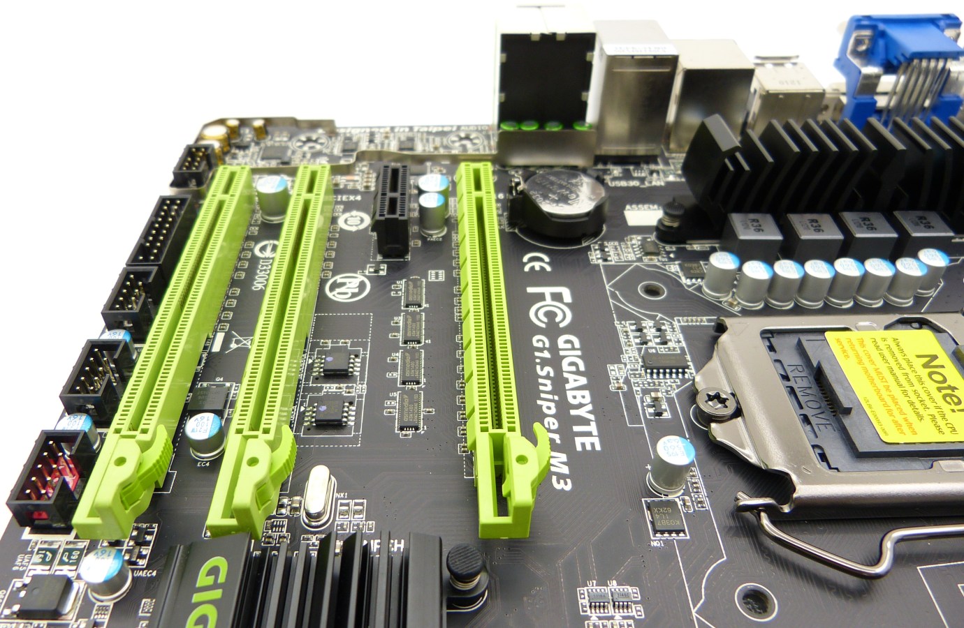 GIGABYTE G1.SNIPER M3. Detalle Distribución Slots PCIe 3.0 (1 x16, 1 x8) y PCI 2.0 (1 x4, 1 x1 )