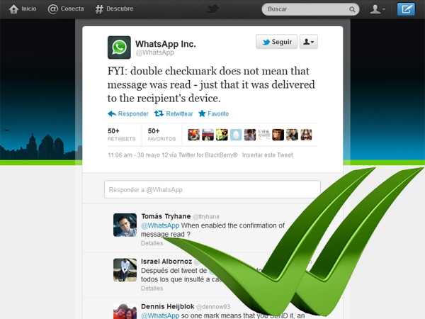 Es así como luego de tantas preguntas a través de las distintas rede sociales que han recibido, desde WhatsApp lo han aclarado: «No, el aviso de doble check en cada mensaje enviado no significa que la persona lo haya leído, solo significa que su dispositivo ha recibido el mensaje«. Esto quiere decir que un «check» avisa que se ha enviado con éxito el mensaje y dos «check» que el destinatario lo ha recibido, no que lo ha leído. Así que ya no tenemos que creer que leyeron e ignoraron nuestro mensaje.