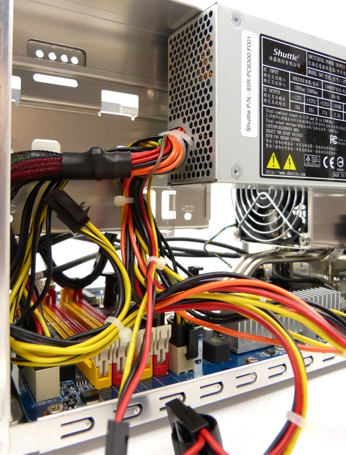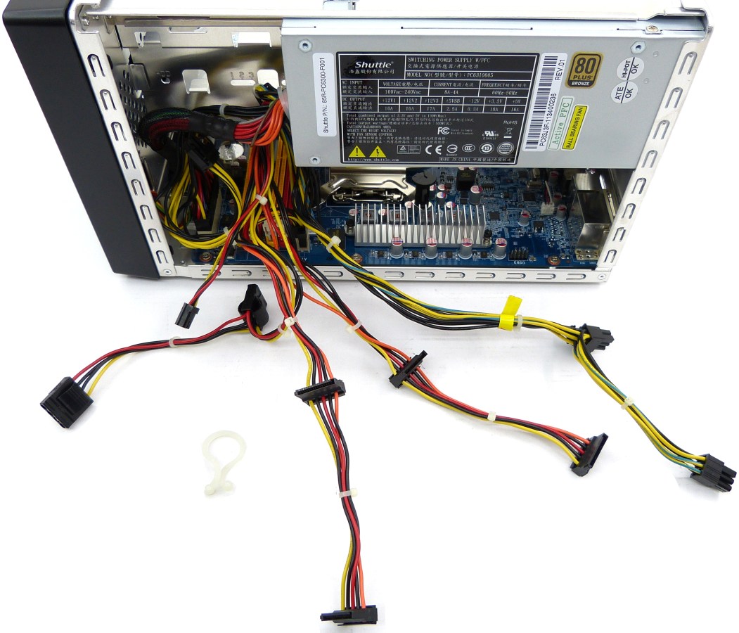 SHUTTLE SZ68R5. Detalle Cableado Fuente FlexATX 500W. (1x Floppy, 2x Moxex 4 pines, 2×2 SATA 2x PCIe 6+2 pines)