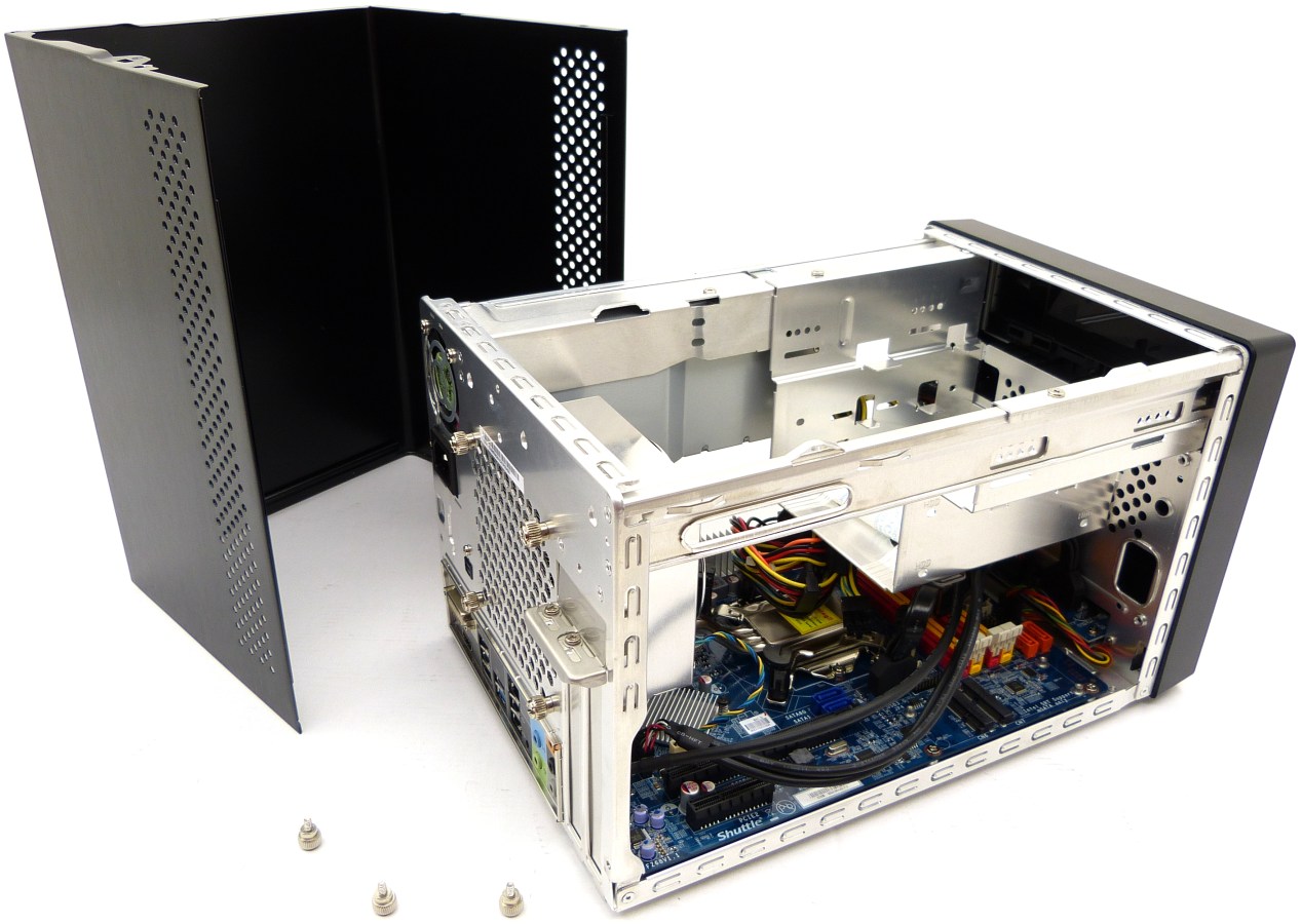 Lo primero que llama la atención al recibir un producto de esta índole es hasta qué punto viene de equipado. Por tanto, lo primero que se suele hacer es concretar qué componentes de hardware trae ya instalados de fábrica en el interior de la caja. Hace falta señalar que nos encontramos en frente de un cubo de reducidas dimensiones, otro formato de caja válido para albergar un equipo de computación, mucho más cúbico que las torres típicas para PC (minitorres, semitorres, torres, supertorres o ultratorres), además de las cajas slim delgadas. Pues bien, con todos estos formatos, viene el lío de saber qué componentes hardware son compatibles o cuáles no. Esta caja cubo viene equipada con una placa base con un factor de forma peculiar de la marca Shuttle, similar al formato flexATX, además de una fuente de alimentación también de formato flexATX, de 500W, sin olvidarse de un sistema de refrigeración activa diseñado aposta para la ocasión. Básicamente este es el equipo a presentar.
