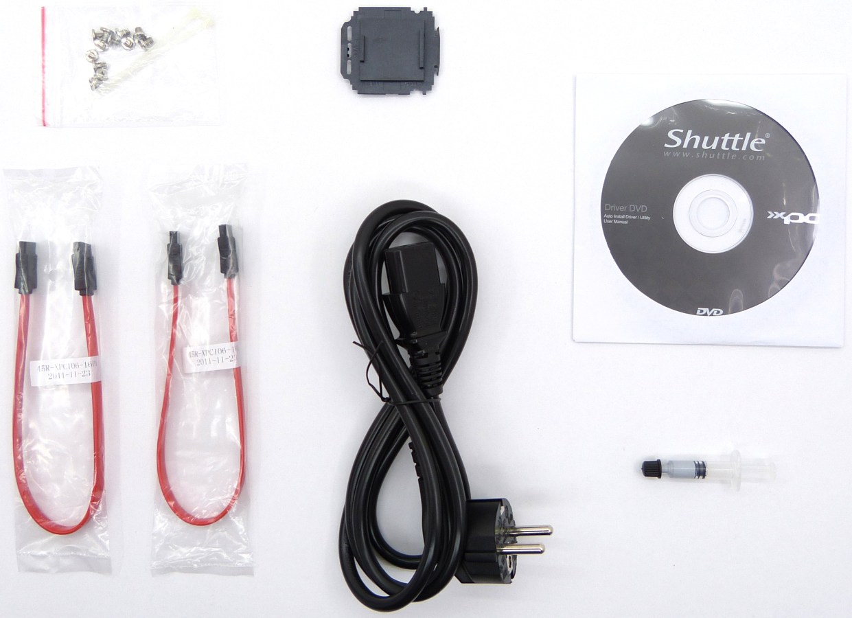 SHUTTLE SZ68R5. Cable de Alimentación de CA. Cables SATA (x2). Bolsa con Tornillos de Montaje. Compuesto Térmico. DVD de Instalación
