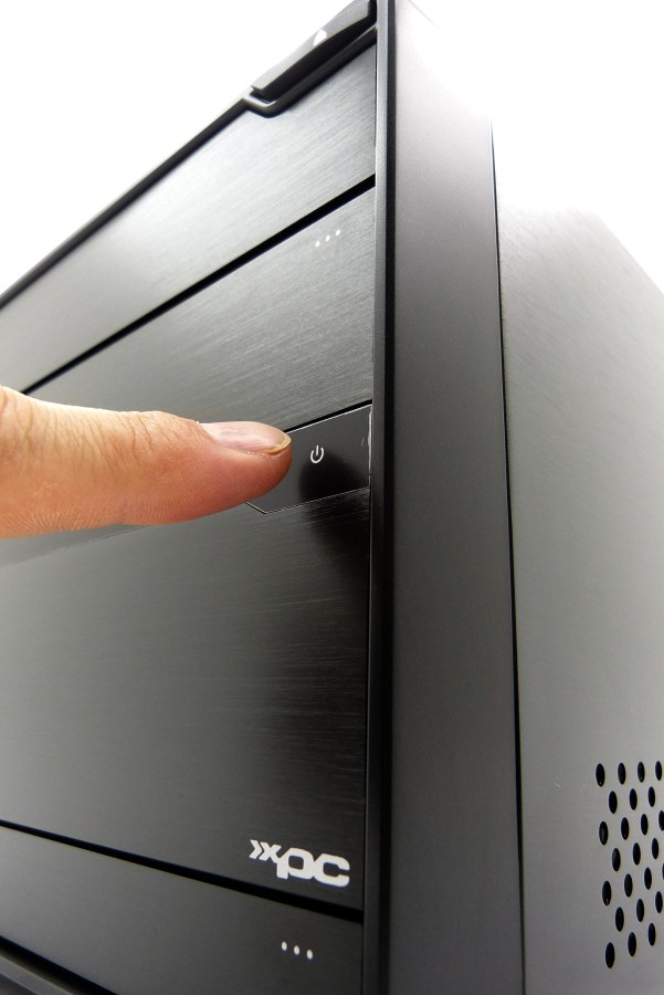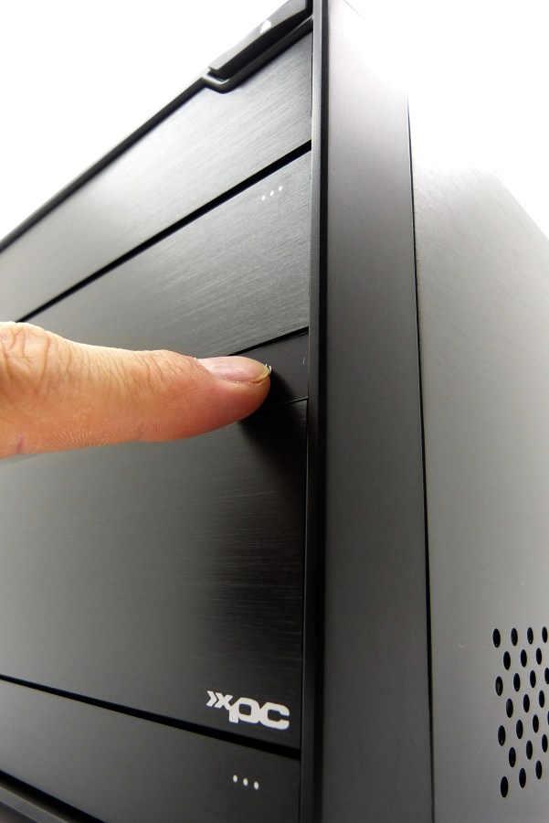 SHUTTLE SZ68R5. Detalle Botón de Encendido/Apagado. «A punto de Pulsarse»