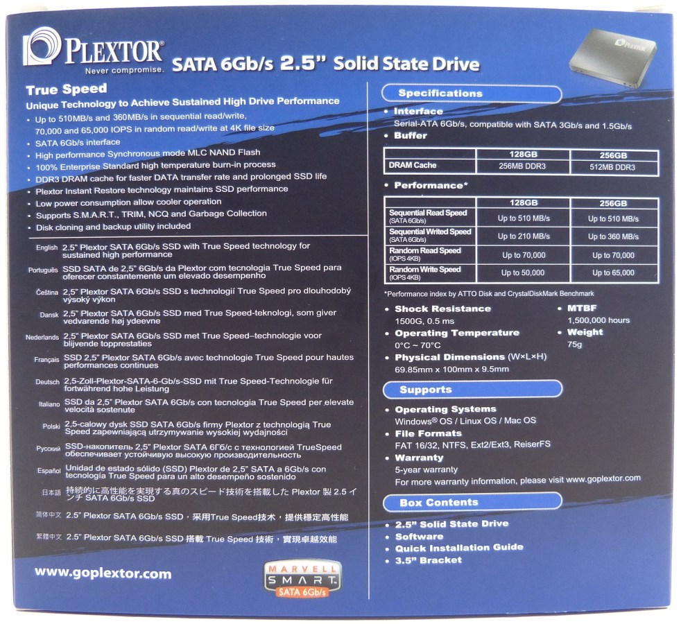 PLEXTOR PX-128M3. Embalaje Vista Trasera