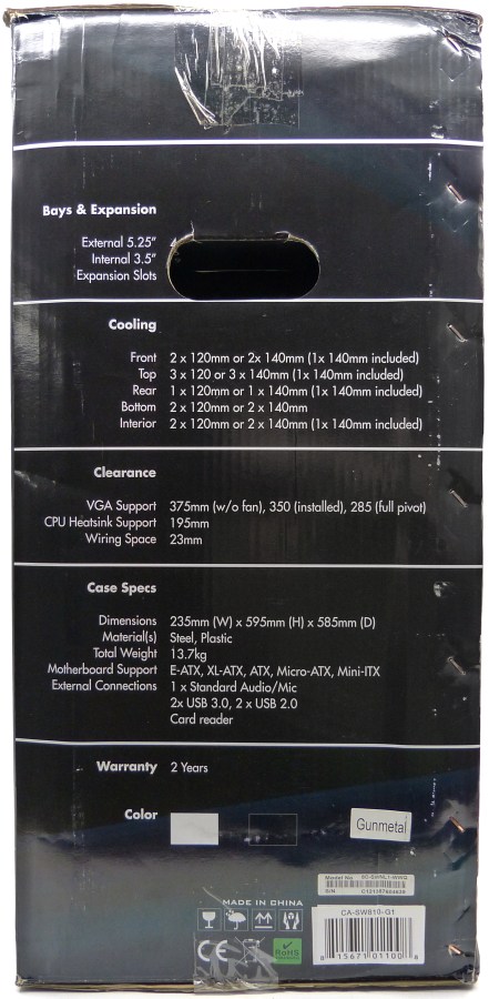 NZXT SWITCH 810 GUNMETAL. Embalaje Vista Trasera
