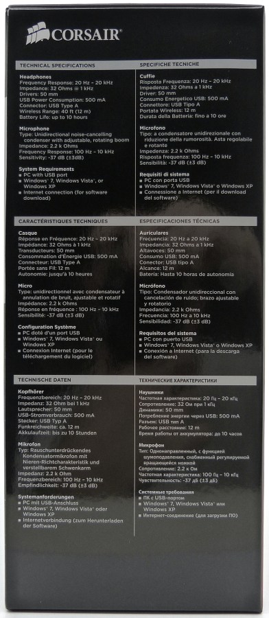 CORSAIR VENGEANCE 2000. Embalaje Vista Trasera