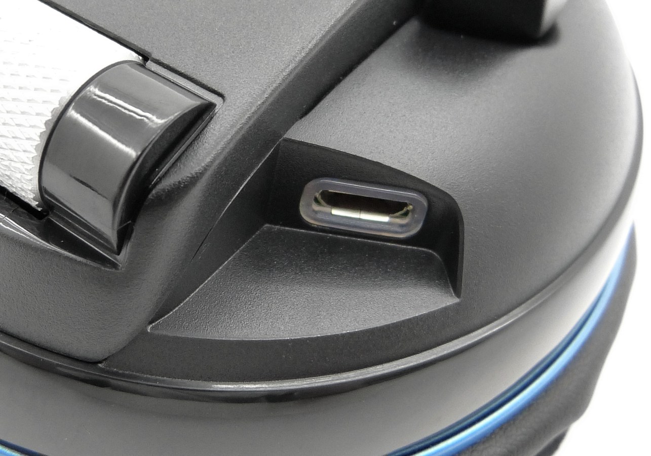 CORSAIR VENGEANCE 2000. Detalle Conector de Alimentación/Carga. LED Indicador de Batería disponible (3 estados: Rojo Intermitente en Baja Batería 10%, Ámbar Intermitente en proceso de Carga, Verde Constante en Carga Finalizada)