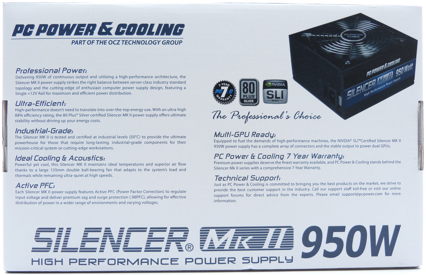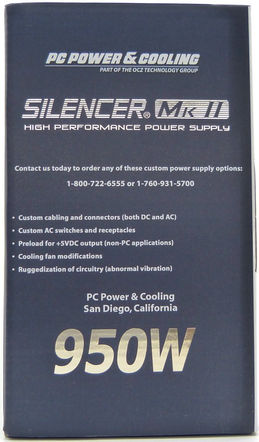 PC POWER & COOLING SILENCER MK2 950W. Embalaje Vista Trasera