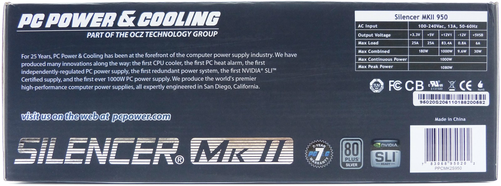 PC POWER & COOLING SILENCER MK2 950W. Embalaje Vista Superior