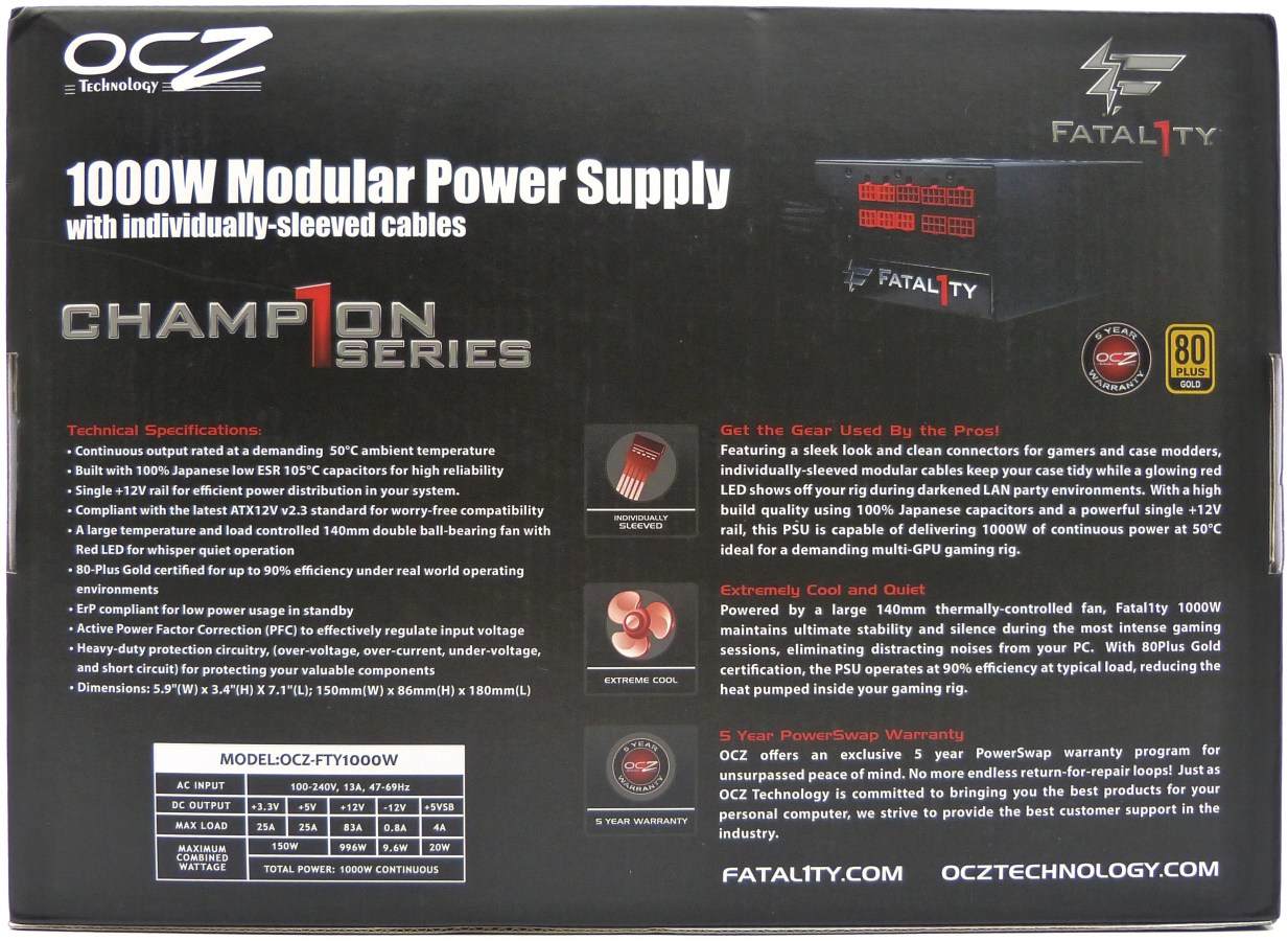 OCZ FATAL1TY 1000W. Embalaje Vista Trasera