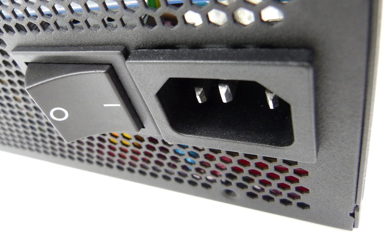 OCZ FATAL1TY 1000W. Detalle Conector de CA + Interruptor de Encendido/Apagado Trasero