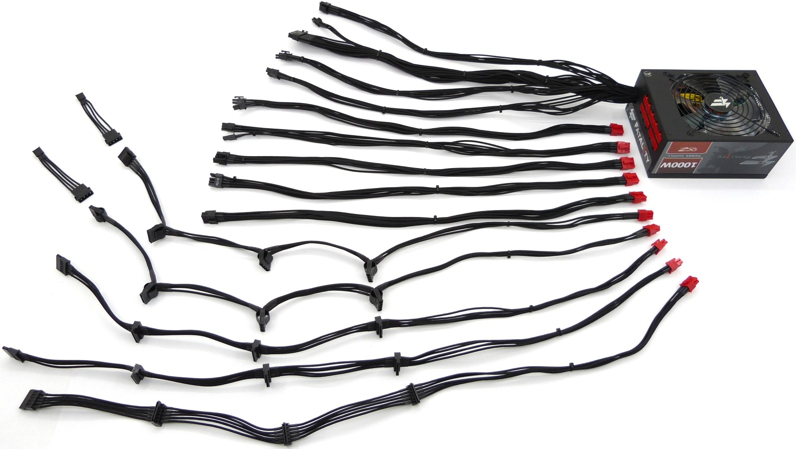OCZ FATAL1TY 1000W. Fotografía en «Modo Medusa» I. Cableado Nativo y Modular Desplegado