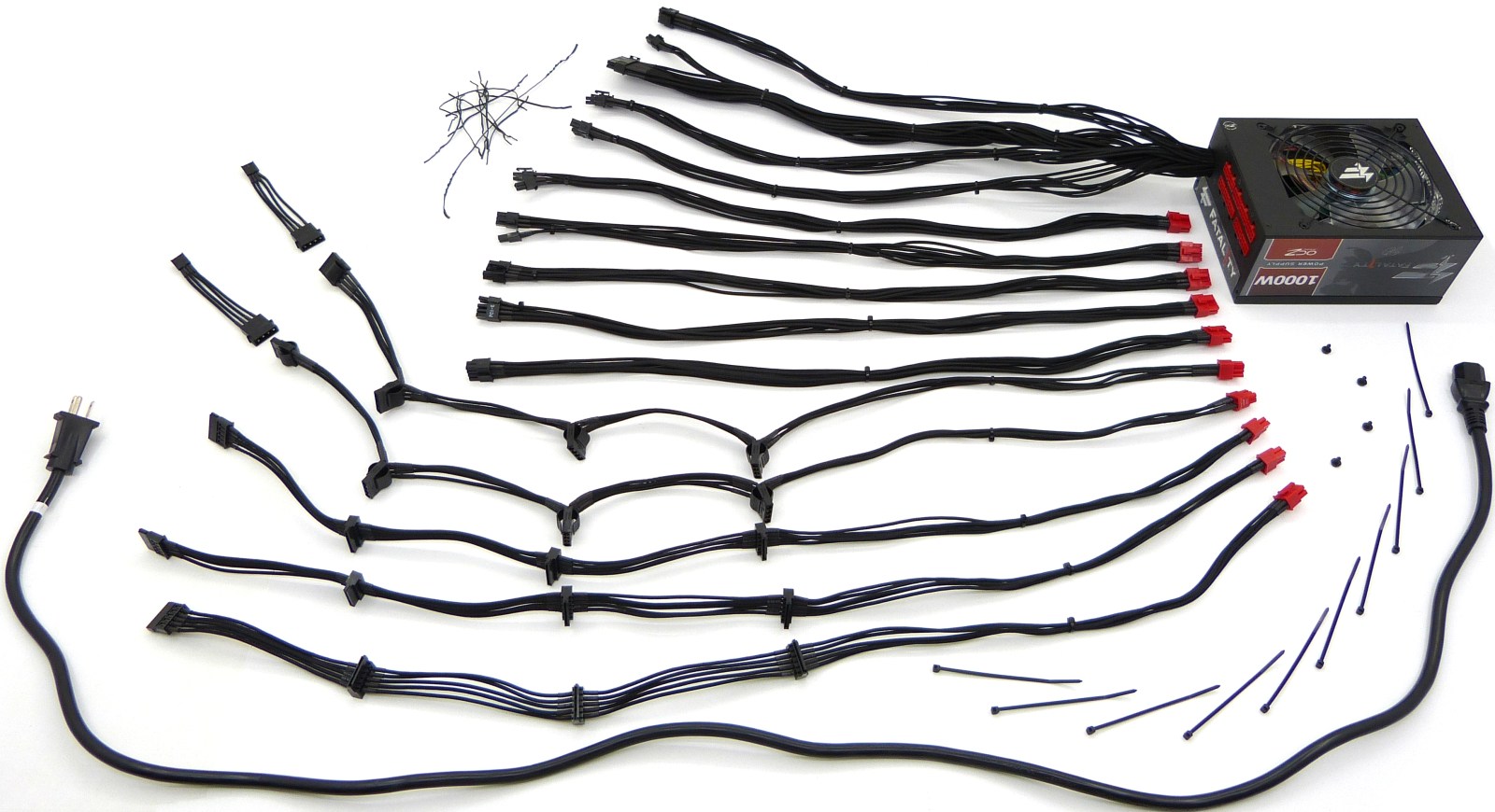OCZ FATAL1TY 1000W. Detalle Cableado Nativo, Conectores y Enfundado