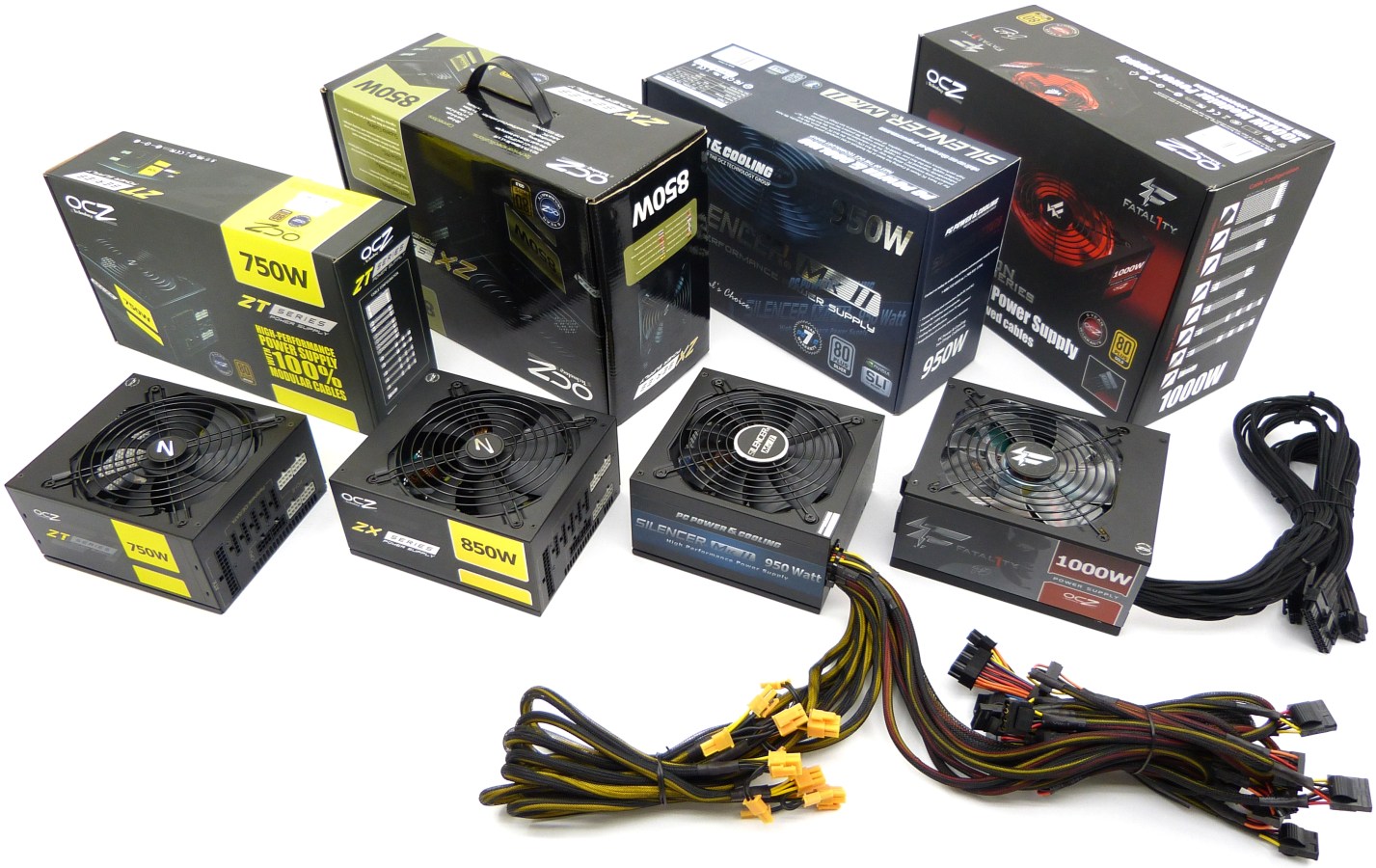 OCZ 05 FUENTES DE ALIMENTACIÓN ATX. Fotografía en «Modo Coro». ZT 750W, ZX 850W, PPCMK2S 950W y FTY 1000W