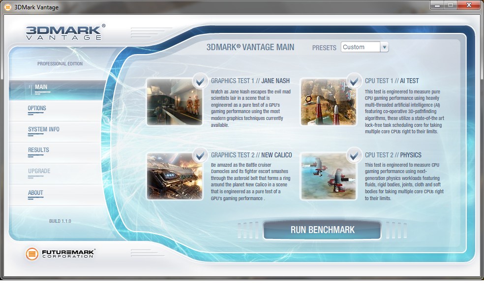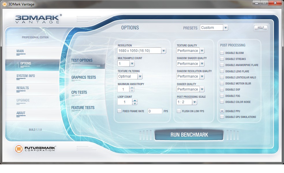 ZALMAN HD6770-Z VF902 Black Pearl. Captura 3DMark Vantage v1.1. Menú «Options». Configuración Empleada en las Pruebas