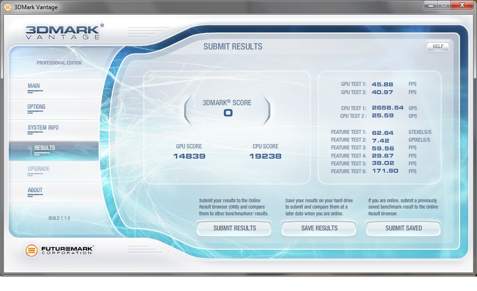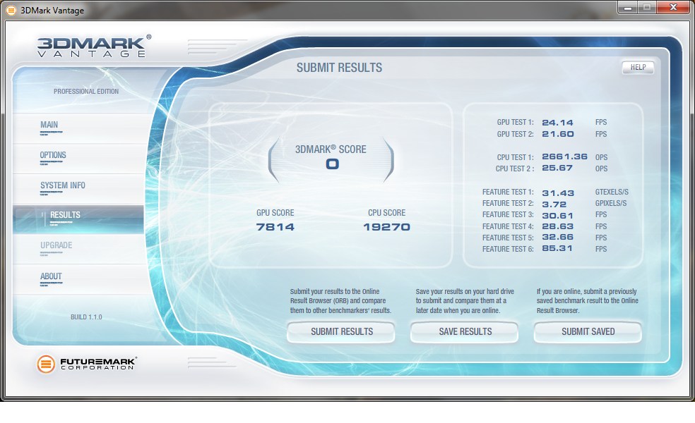 Después de hacer correr por completo todos los test del 3DMark con una resolución a pantalla completa de 1680 x 1050 y con una configuración generalizada en modo «Performance» se han obtenido los siguientes resultados de imágenes por segundo: