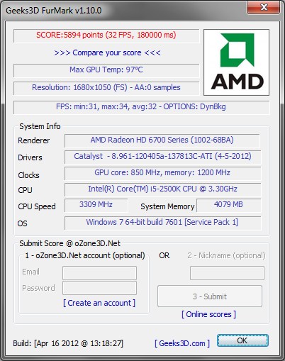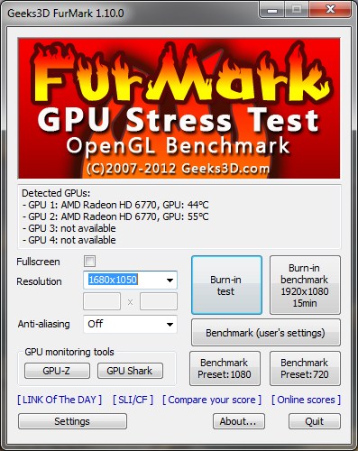 ZALMAN HD6770-Z VF902 Black Pearl. Captura FurMark v1.10. Previa Test de Estrés