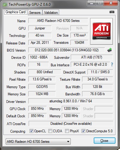 ZALMAN HD6770-Z VF902 Black Pearl. Captura GPU-Z v0.60. Especificaciones Técnicas