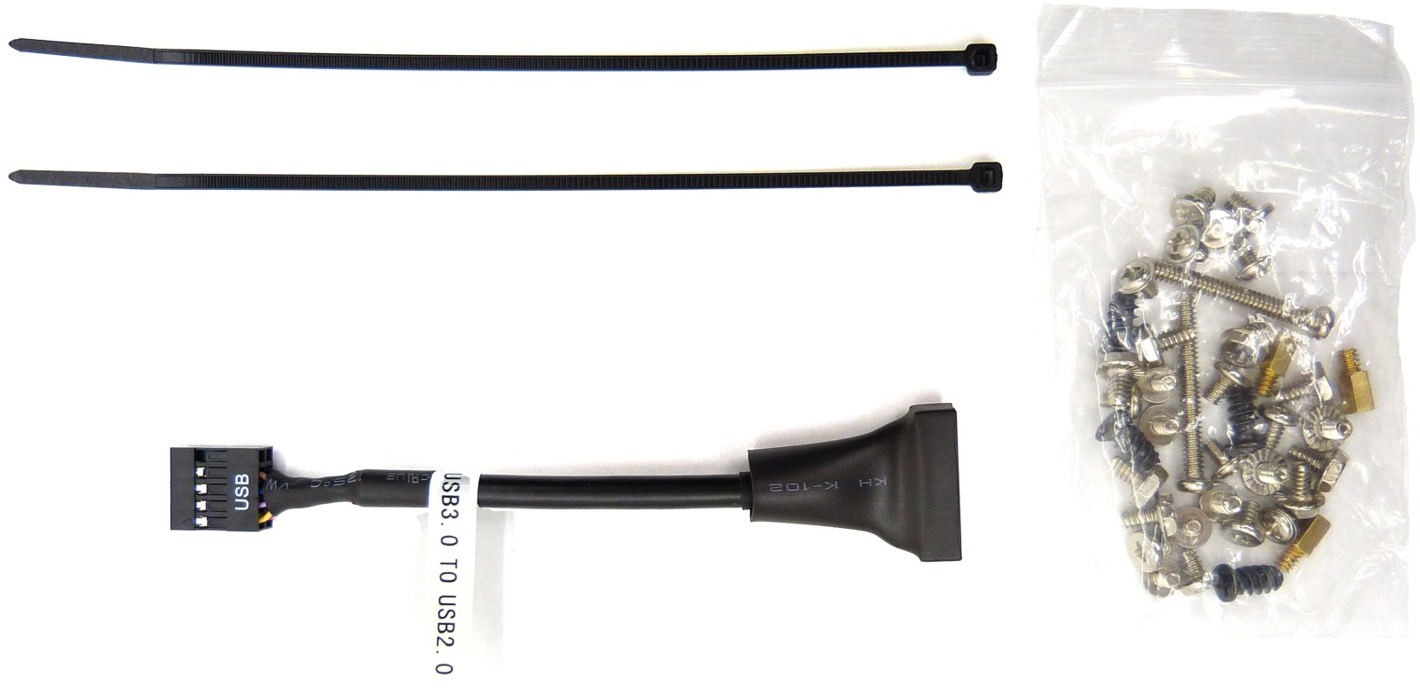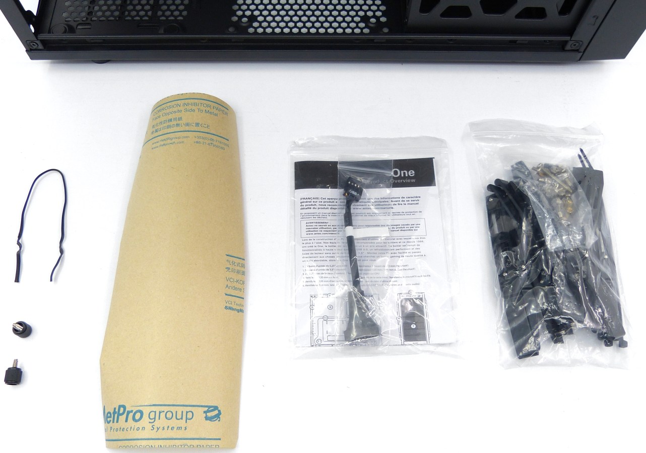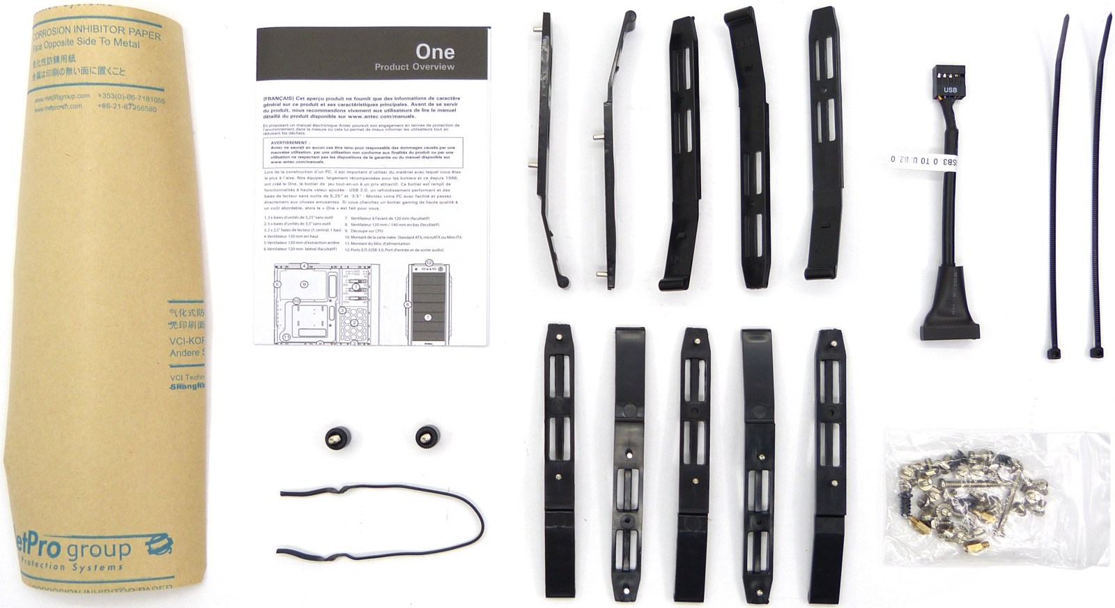 ANTEC ONE. Detalle Bolsa de tornillos, 2 Bridas y Adaptador USB 3.0 a USB 2.0