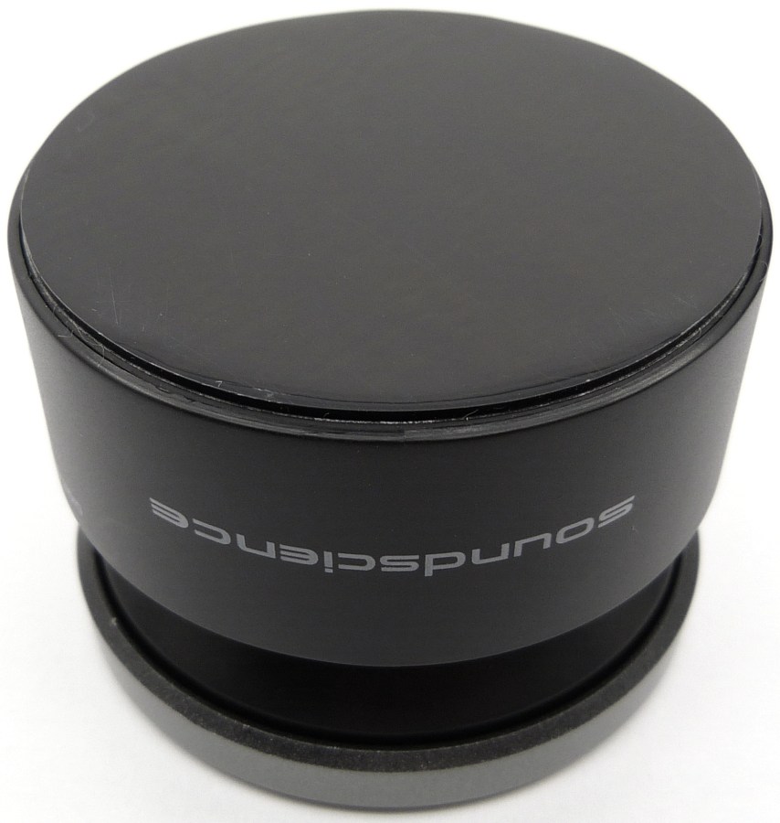 SOUNDSCIENCE ROCKUS 3D 2.1. Consola de Control Remoto III. Detalle Base con Adhesivo de Fijación. Detalle Logo «Soundscience» (invertido)