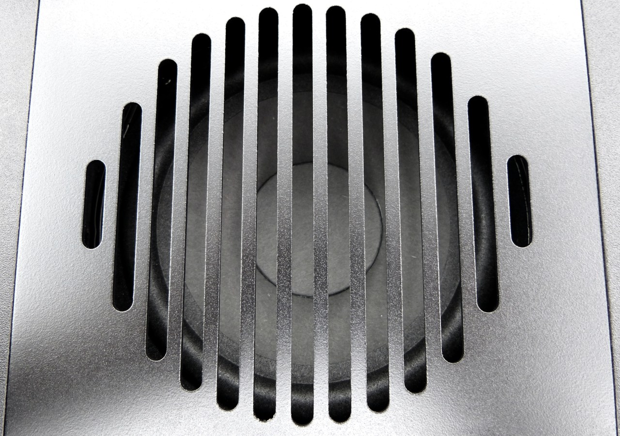 SOUNDSCIENCE ROCKUS 3D 2.1. Detalle Rejilla Radiador + Altavoz de Bajos (subwoofer)