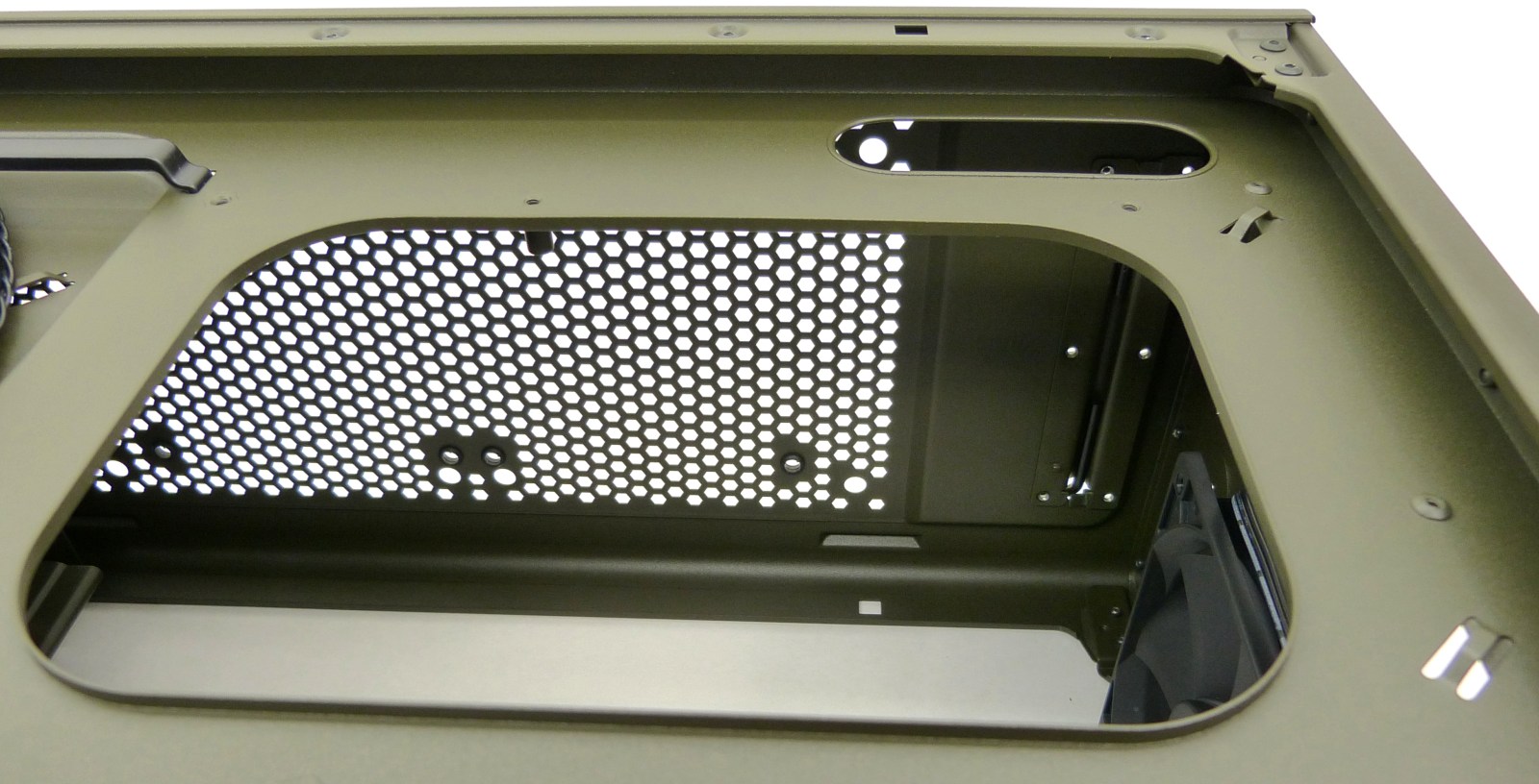 CORSAIR VENGEANCE C70 MILITARY GREEN. Detalle Ventanal para Instalación Disipador CPU de Grandes Dimensiones y Perforación Superior de Paso para Cable de 4+4 Contactos para CPU