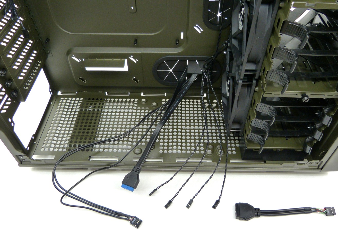 CORSAIR VENGEANCE C70 MILITARY GREEN. Detalle Conectores F_Panel (x4) Audio y USB 3.0. Adaptador USB 3.0 a USB 2.0