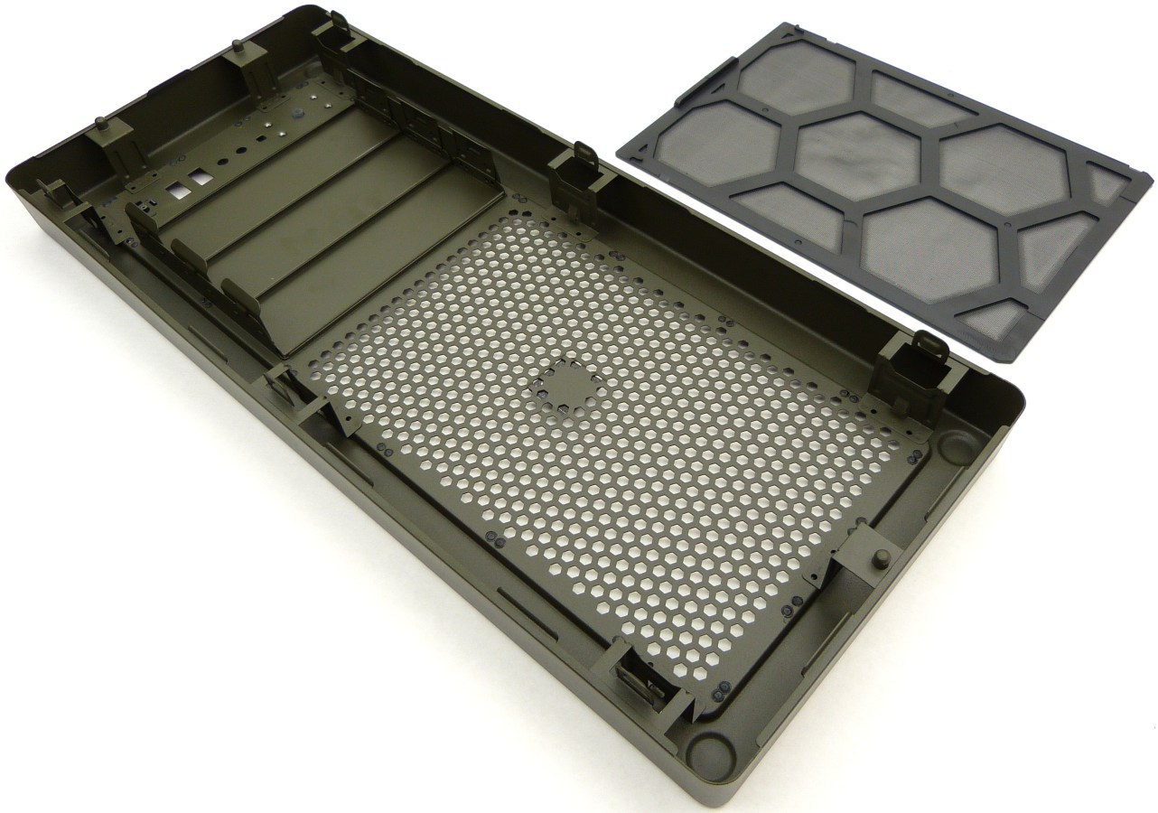 CORSAIR VENGEANCE C70 MILITARY GREEN. Vista General del Frontal. Destalle Desarme Filtro Antipolvo Frontal