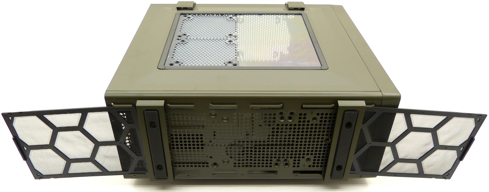 CORSAIR VENGEANCE C70 MILITARY GREEN. Vista General Despliegue Filtros Antipolvo Inferiores (x2)