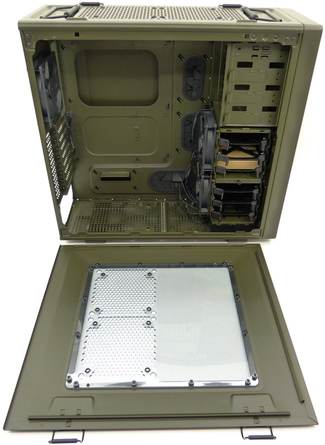 CORSAIR VENGEANCE C70 MILITARY GREEN. Abriendo la Semitorre por el Lateral Izquierdo. 2 Ventiladores de 120/140mm (Opcionales)