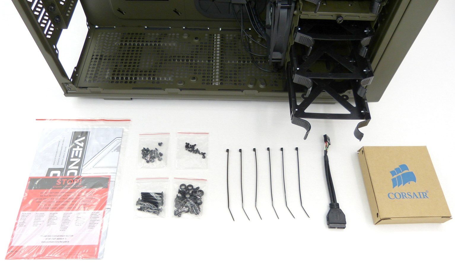 CORSAIR VENGEANCE C70 MILITARY GREEN. Detalle Desglose de Tornillos. Bridas y Adaptador USB 3.0 a USB 2.0