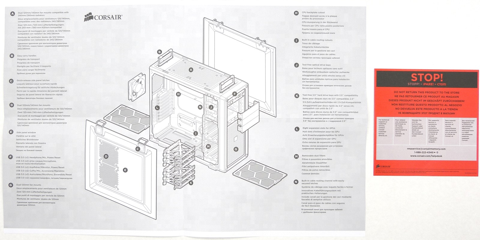 CORSAIR VENGEANCE C70 MILITARY GREEN. Detalle Manual de Usuario Desplegado Interior Multiidioma. Detalle Folleto de Garantía de Corsair