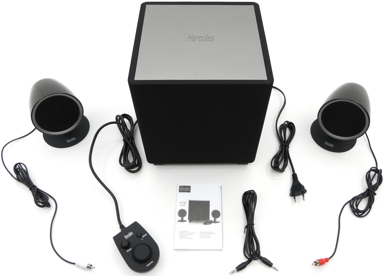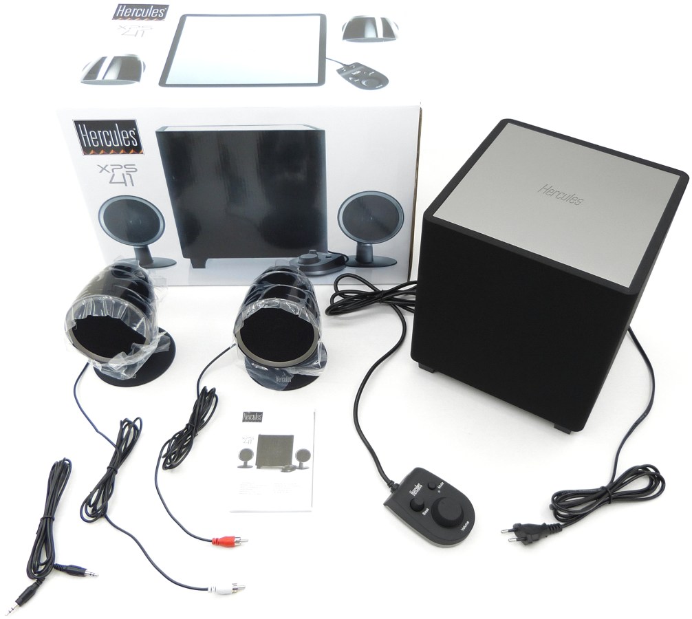 - 1 Altavoz amplificado (41W RMS) con subwoofer (24WRMS) y panel trasero de conexiones y control, cable de alimentación incorporado