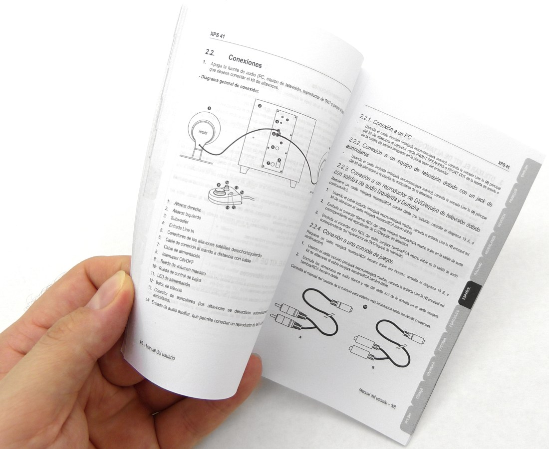 - 1 manual de instrucciones extenso en múltiples idiomas, formato libreto