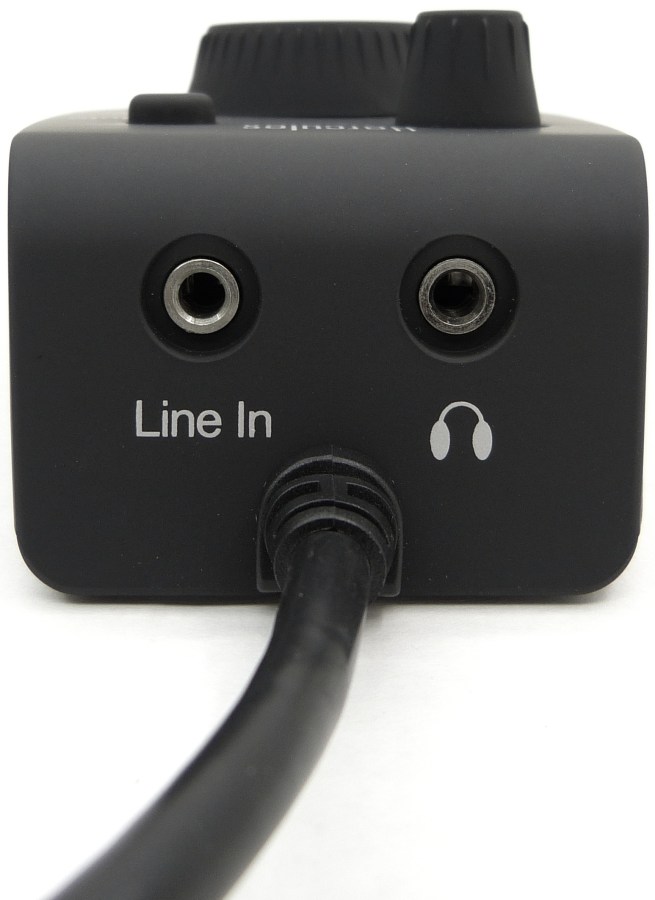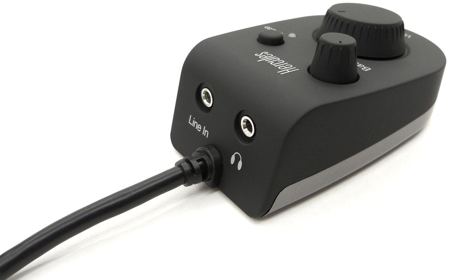 HÉRCULES XPS 41. Mando a Distancia Vista Delantera. Detalle Conectividad Remota. Conectores Estéreo Hembra tipo Jack 3.5mm de Entrada («Line In») y de Salida para Auriculares