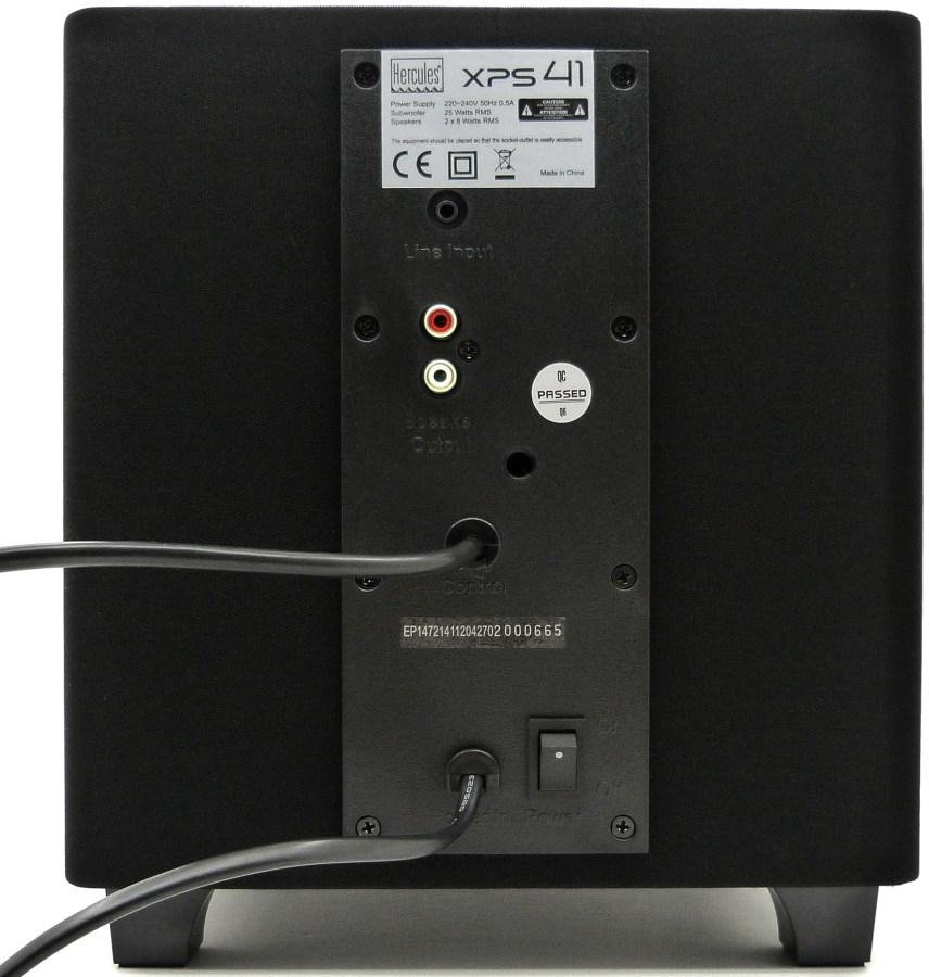 HÉRCULES XPS 41. Altavoz Subwoofer Activo. Vista Trasera. Panel de Conexiones y Control Trasero