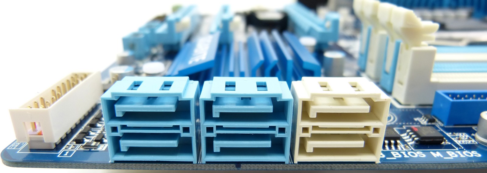 Los detalles más destacados son varios. En primer lugar, únicamente trae 2 conectores SATAIII, en lugar de 4 conectores SATAIII, por lo que igual va algo escasa de estos conectores. Más SATAIII y menos SATAII hubiera estado más acertado, aunque esto viene limitado por el propio chipset de Intel Z77 Express, pero todo es implementarlo. Recordamos con ello que no todo siempre depende del ensamblador, en este caso Gigabyte, sino que otras entidades repercuten directamente en lo que es capaz de ofrecer un componente tan vital como es una placa base. Lo siguiente viene referido al zócalo PCIe x8 colocado en la parte más baja, separado del zócalo de x16 por los otros 2 zócalos que conforman el resto, a x1 y x4 respectivamente. Este reparto habilita el uso de al menos el zócalo de x4 entre 2 tarjetas gráficas que ocupen dos slots, por ejemplo, para conectar una tarjeta de sonido dedicada o una PCIe SSD. Por otro lado, vemos algo obsoleta la conexión VGA (puerto D-Sub), ya que podría estar sustituida por un adaptador al puerto DVI, y emplear este espacio para habilitar un puerto Display Port. Quizá sería ser algo exigentes, pero garantizaría mayores resoluciones que las ofrecidas por HDMI. De todos modos, es posible que no sea del todo adecuado para las modestas IGPU integradas de los procesadores de Intel Ivy Bridge con HD4000, que aunque han mejorado la última versión integrada de los Sandy Bridge, siguen siendo una opción muy modesta para juegos, siendo solo ideal para visionado en HD, edición, navegación, exploración y poco más, con la garantía de consumir significativamente menos que con una o varias tarjetas dedicadas. Por último, destacar el apartado de audio, tanto de hardware como de software, cuya responsabilidad recae esta vez en un chip controlador VIA, y no Realtek como nos suele tener acostumbrados los fabricantes de placas base.