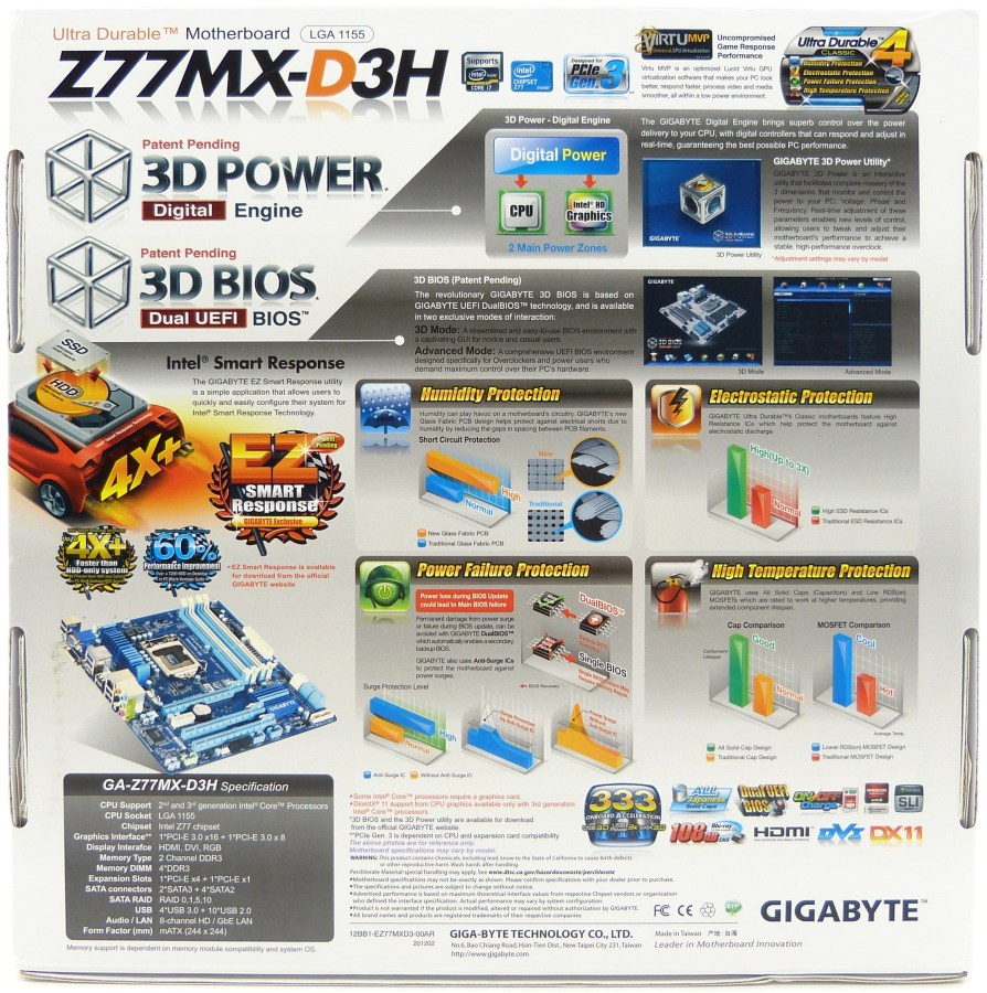 GIGABYTE GA-Z77MX-D3H. Embalaje Vista Trasera